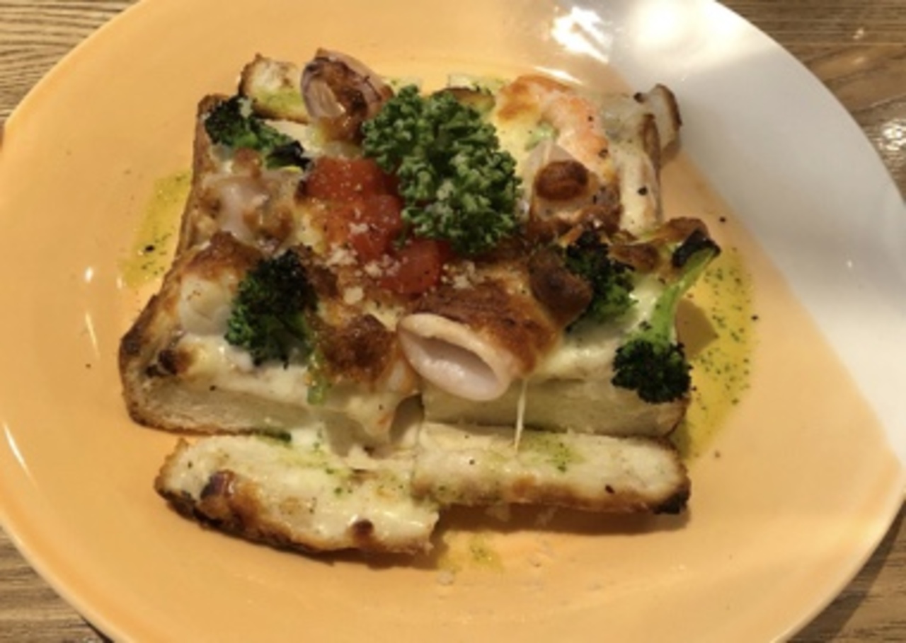 浅草で人気のパン屋さんペリカンの直営カフェです。平日もランチには並んでることが多いです。本日のトーストはシーフードとブロッコリーのチーズ焼きでした。グラタンのようで美味しく切り落とされたパンの耳がカリカリでした。