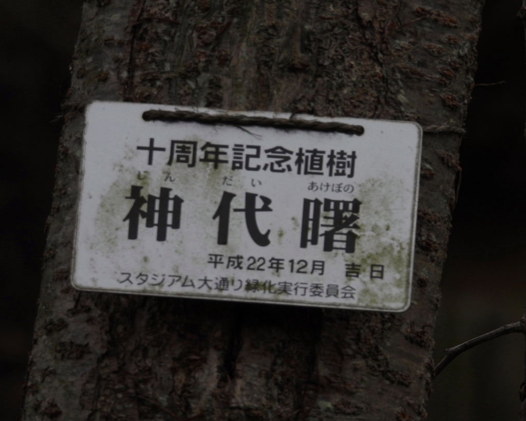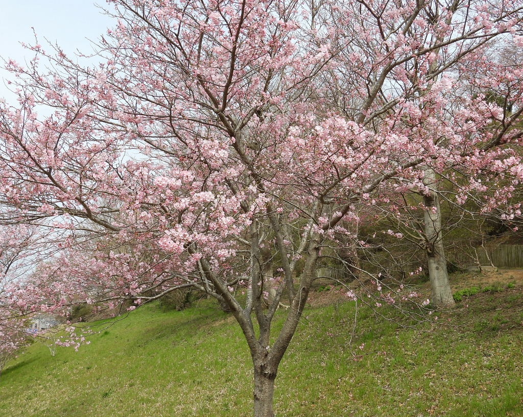 遊歩道脇の桜には、「神代曙(じんだいあけぼの)」という標識が付けられていました。「神代曙」は、東京都の神代植物公園で発見された桜だそうです。花は中輪、一重八重咲きで淡紅色。 開花期は4月上旬だそうです。