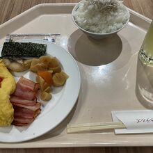 ホテルの朝食会場に指定されているため、朝ごはんで利用しました。