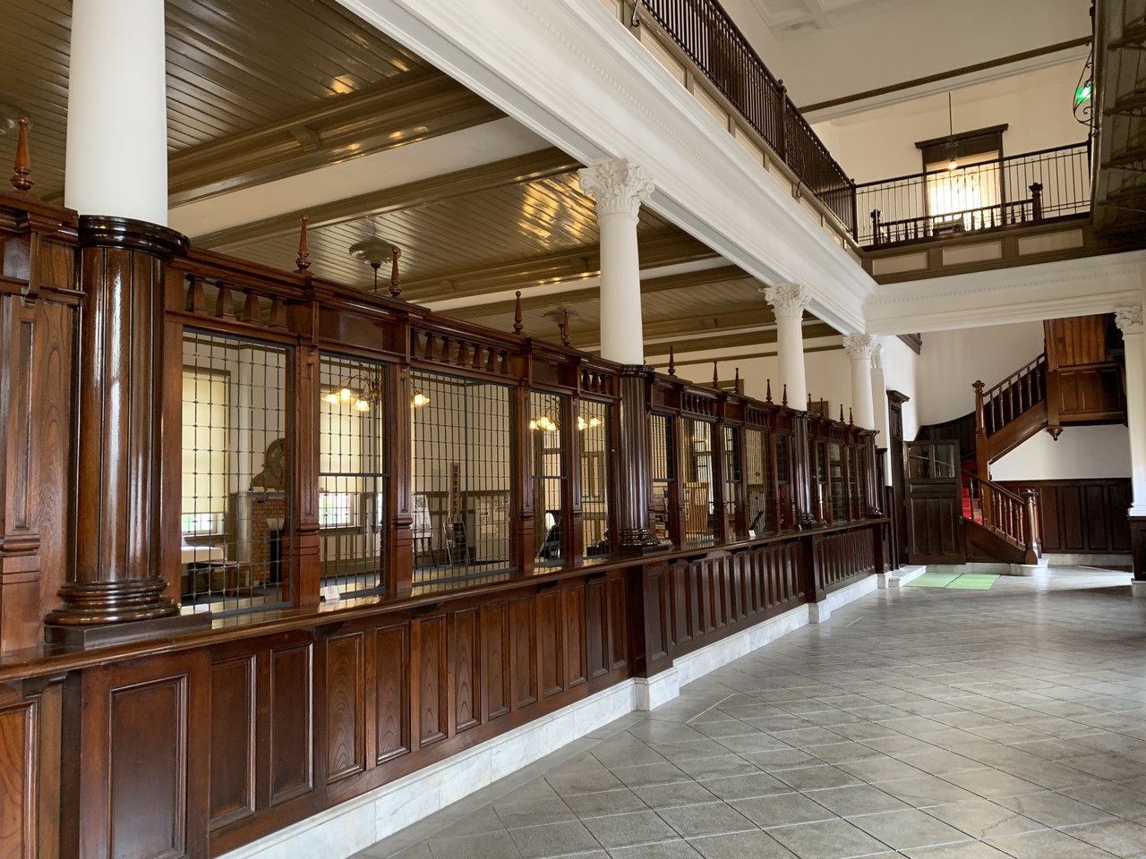 唐津駅のすぐ近くにある明治時代に建てられた銀行。東京駅を建築した辰野金吾さんの設計として知られていますが、調べたところ弟子の田中実さんが辰野式を模して設計した建物だそうです。建物の中は無料で見学できて、当時の銀行窓口やシャンデリア、階段など当時の様子をうかがい知ることができます。