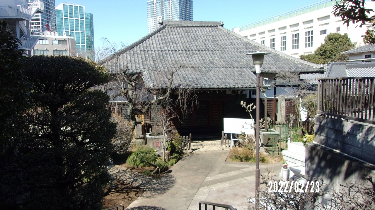この薬王寺は魚藍坂沿いにあります。坂の場所を利用した段差がある寺です。この寺は地下鉄都営浅草線泉岳寺駅から伊皿子坂を登り魚籃坂を下ってすぐにあります。この寺は日蓮宗のもので17世紀前半麻布で創建されてすぐに今の場所に移築しています。境内には史跡がいくつかある表示板があります。山門からは一段下がった場世に本堂があり上からの本堂の姿が魅力的です。