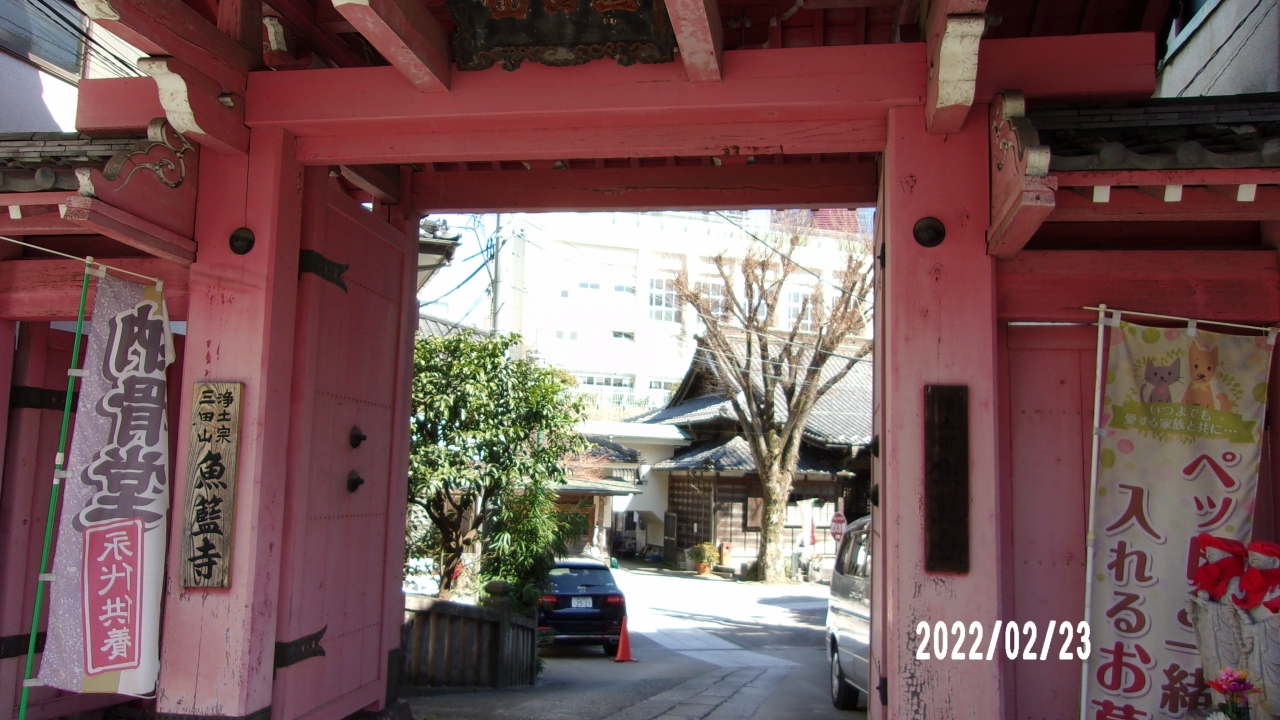 この三田山魚籃寺は高輪と三田の間にある魚籃坂の途中にあります。地下鉄東京メトロ南北線白金高輪駅から東に5分強の場所にあります。浄土宗の寺です。17世紀前半に大分県中津市で創建されてすぐに江戸の三田に移築しています。山門は朱色で入ると木造の歴史を感じる本堂があります。山門近くに六地蔵尊がありまた本堂前には塩地蔵尊があります。地蔵尊が印象的です。また亀石も置かれたいます。江戸時代から魚籃坂を守っています。