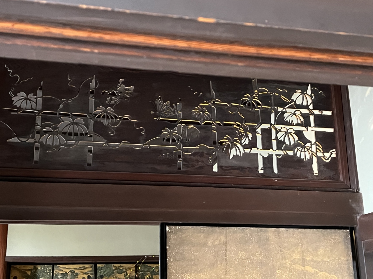 部屋に上がって見て回れるので内部見学がおすすめです。上段の間のりすと葡萄、蝶などの透かし彫りの欄間は桃山時代のものだそう。襖は京都の公家から購入したものなど、保存状況もたいへんよく、見ごたえがあります。ガイドさんの案内もありますし、ボタンを押すと自動音声の案内も聞けます。