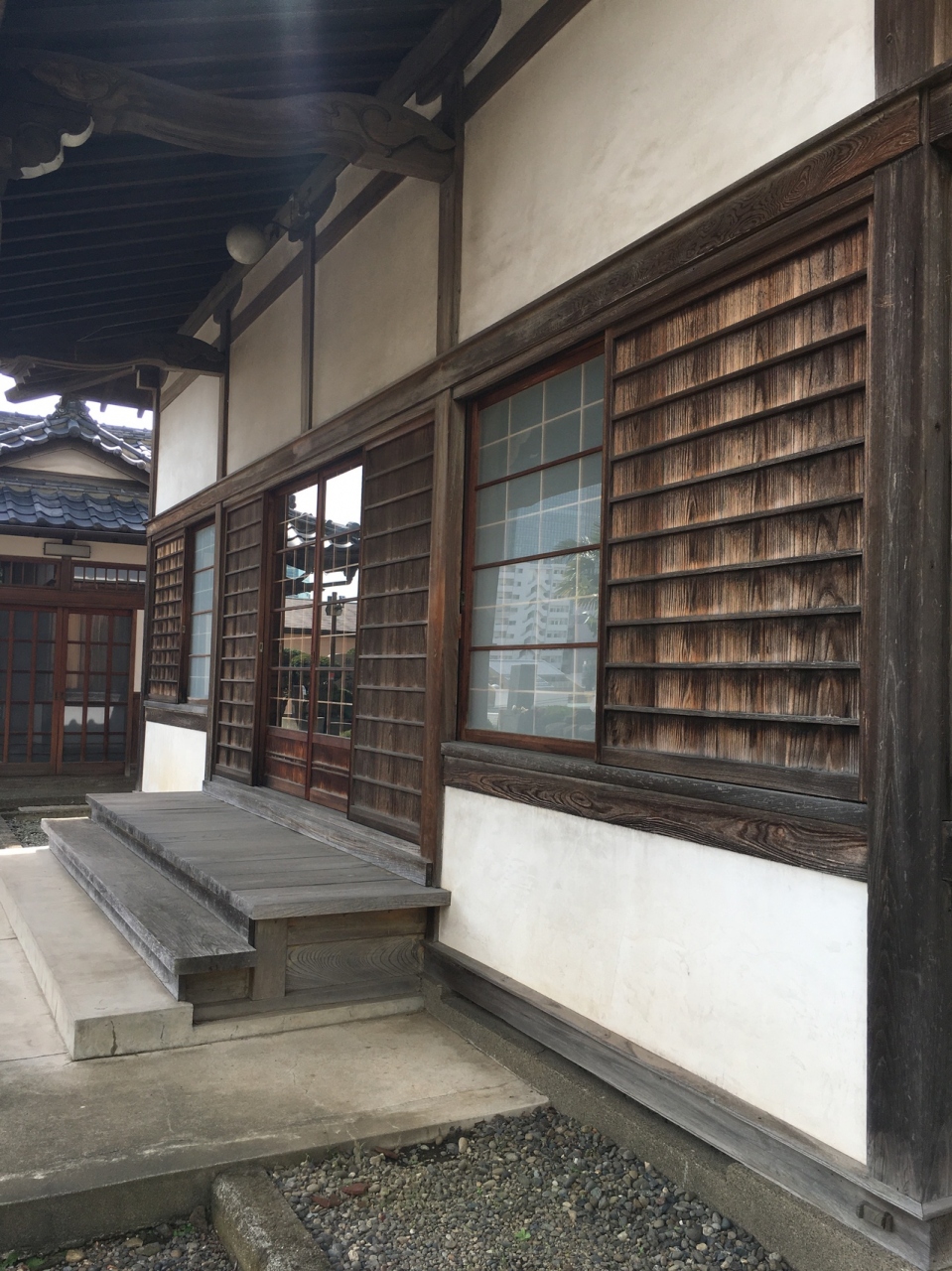 階段を下って左側にはお墓があって右側は本堂で古びた建物でした。奥には桶がたくさん置いてありました。観光寺院ではないので賽銭箱もなく、本堂と墓しかない寺でしたが少し高台にあるので眺めは良かったです。自宅も兼ねているような寺でした。