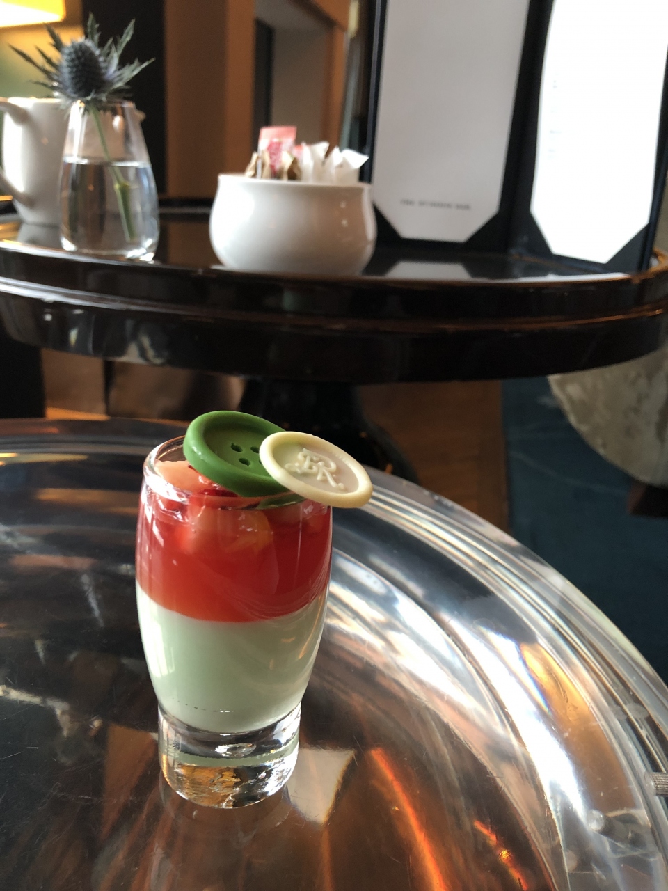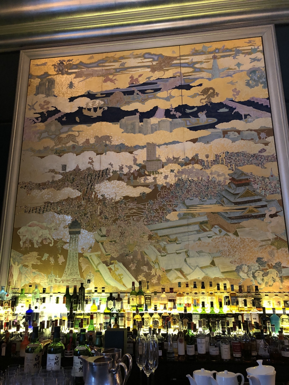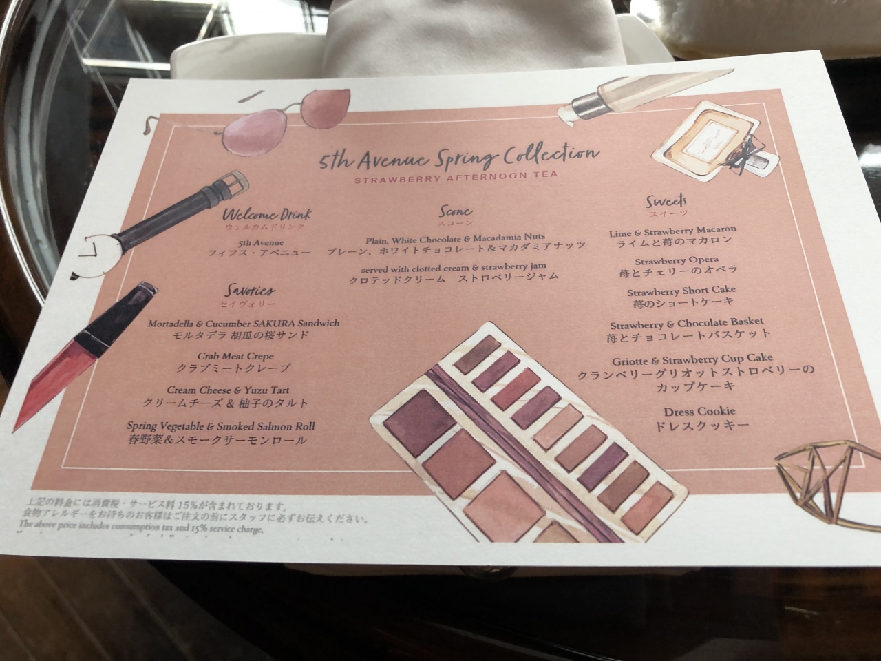 アフタヌーンティーをいただきました。セントレジスホテルがあるニューヨーク五番街をイメージしたポップでおしゃれな雰囲気のするメニューでした。飲み物は紅茶だけですが、そのメニューを見ていると、すかさずスタッフが注文を取りにきてくれるなど、サービスも行き届いています。壁一面を占める大阪の今昔を描いた大きな絵も必見です。大阪城をはじめ、太陽の塔やグリコの看板などが一面に描かれていておもしろいですよ!