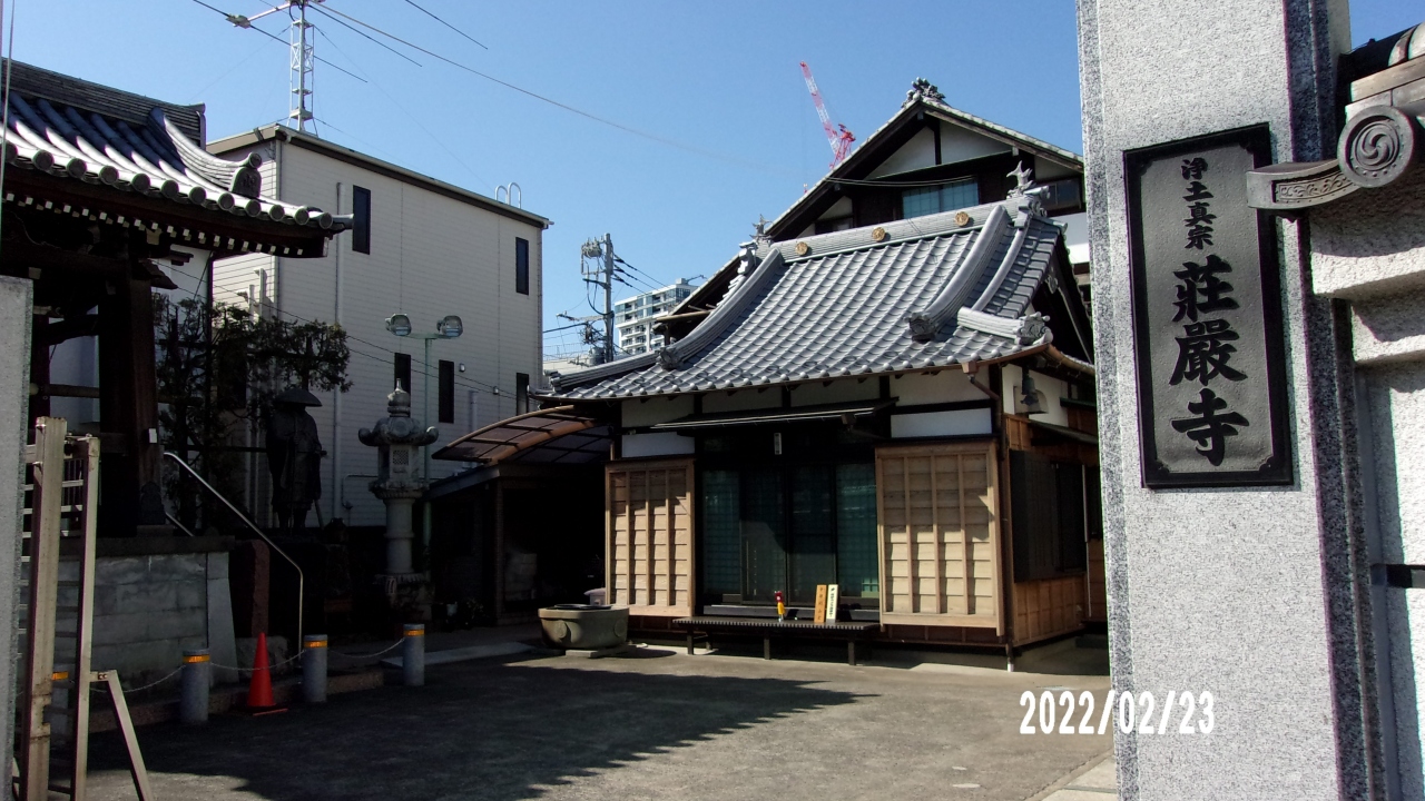 この荘厳寺は高輪の二本榎通りが聖坂と言われる通りに面しています。この寺は地下鉄東京メトロ南北線白金高輪駅から東に10分程度の場所にあります。この寺は17世紀前半に創建された浄土真宗のものです。境内を入ると鐘楼があります。その脇に月岬太郎の碑があります。また境内には古い井戸があります。江戸時代からのものです。雰囲気がある寺です。