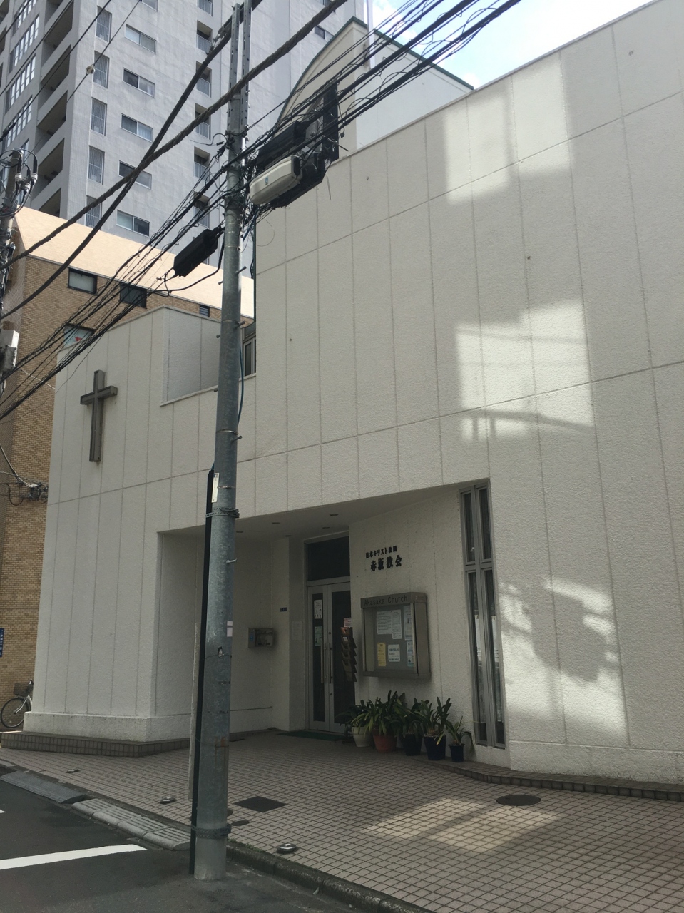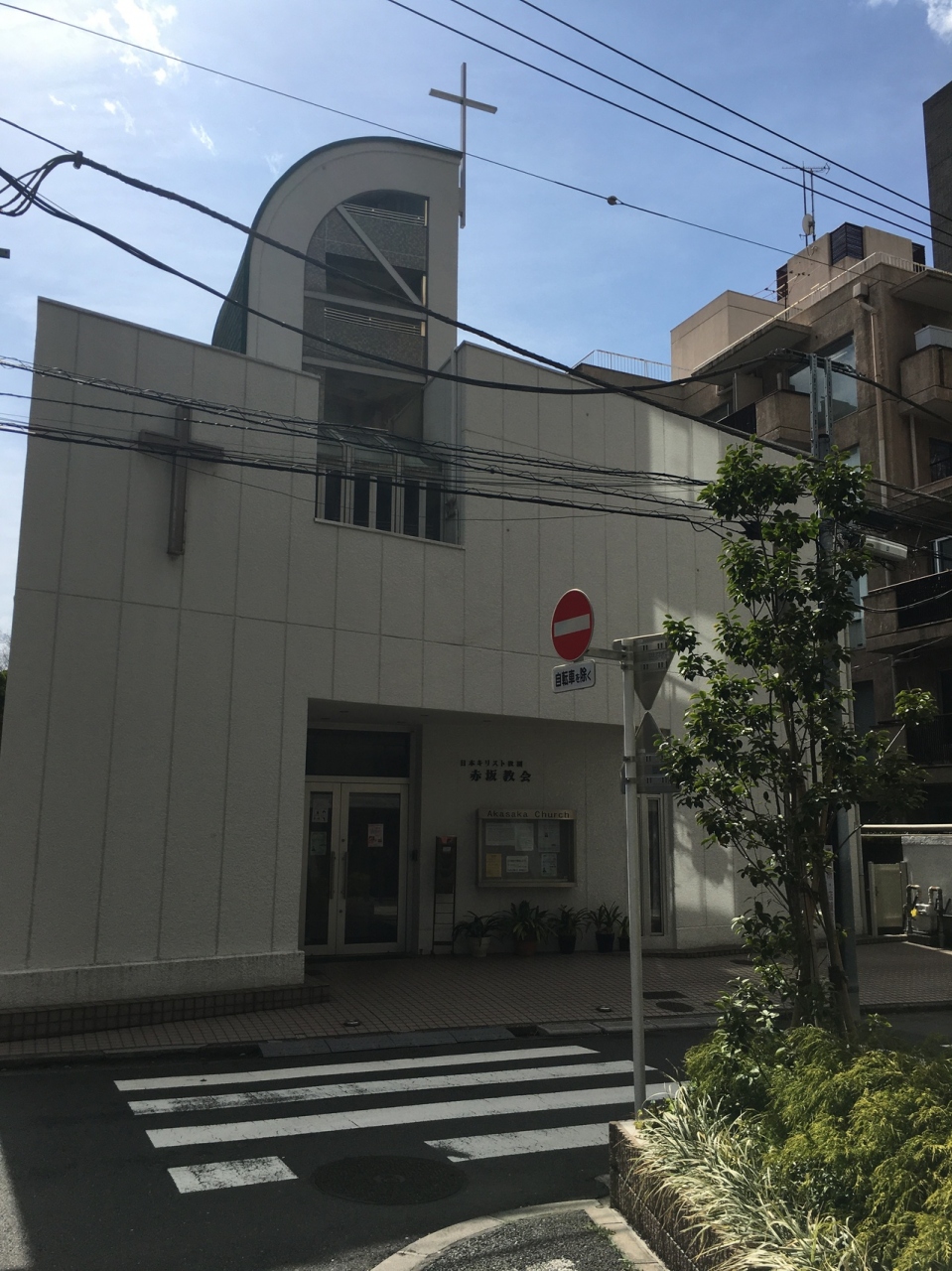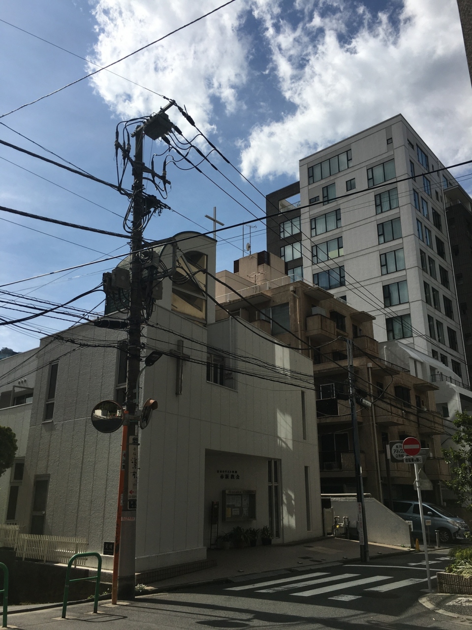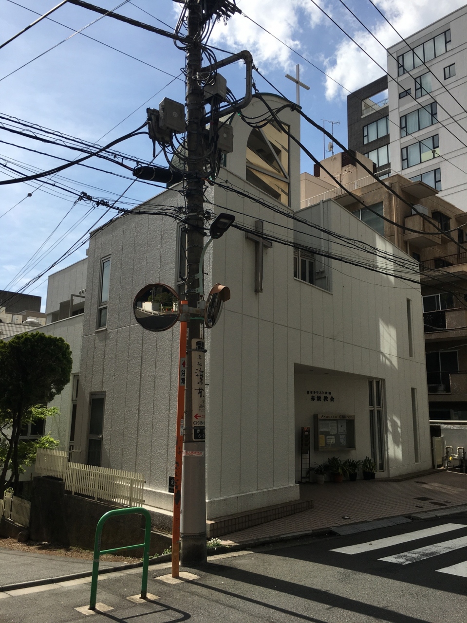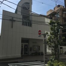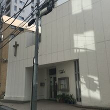 交差点の角にある白い建物で最初は教会とは分かりませんでしたが建物を見ると十字架があり、屋根にもありました。周辺はビルや住宅街なので、白い色が目立っていました。掲示板があって催し物や連絡事項が掲載してありました。