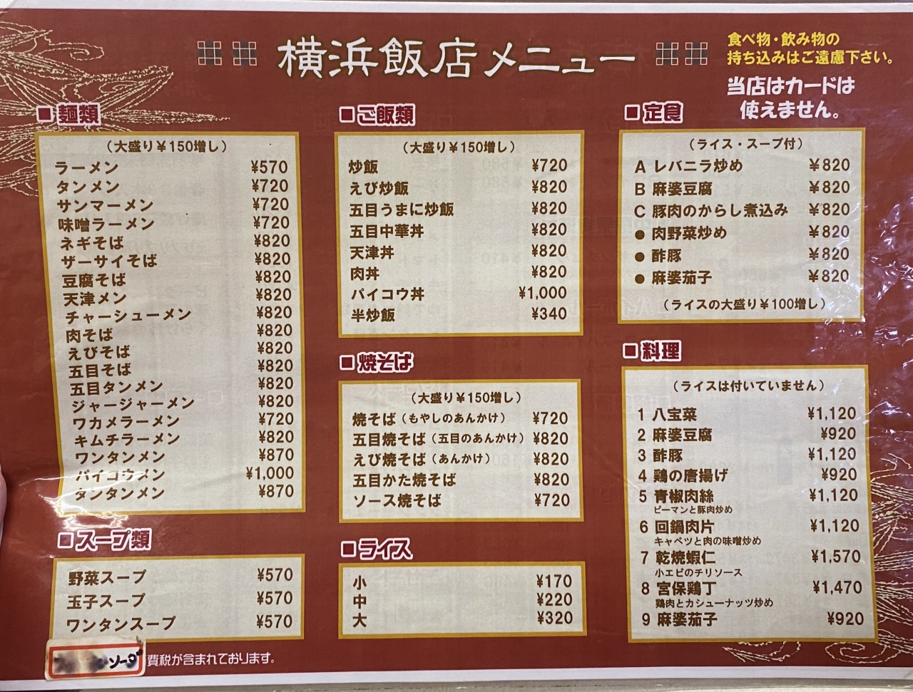 その商店街の中に「横濱飯店」という飾り気のない/面白みの無い中華料理店があります。ただ、こんな店でもなんと既に50年の歴史があるんだそぉ(昔からここにあったのか、移転してきたのかは不明)。