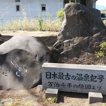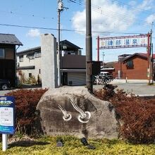 磯部駅を下車しすぐの駅前広場や徒歩5分くらいの赤城神社裏手に石碑を見ることができる。静かな温泉街、風情あるマークを見ながら散策することができた。