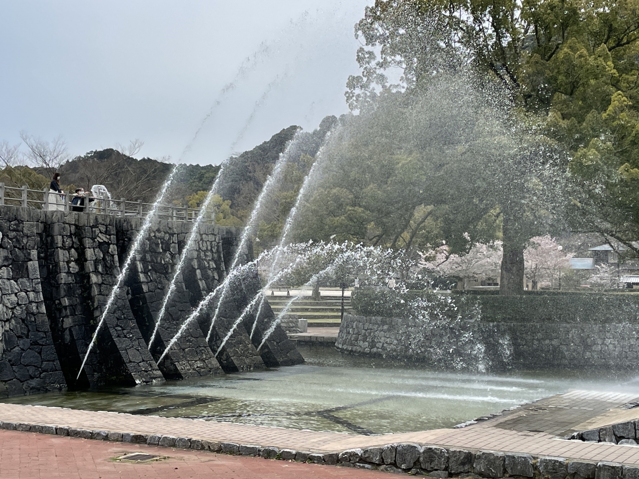 公園、と一口にいっても広く、敷地に徴古館や大噴水、菖蒲園や牡丹園などが点在しています。特にお勧めなのが吉香 鵜の里 という、錦帯橋での鵜飼を紹介する小さな建物と鵜のケージです。鵜は、こんなにたくさん!というほど密な状態でいます。水色の目が美しく、珍しいものを見ることができました。