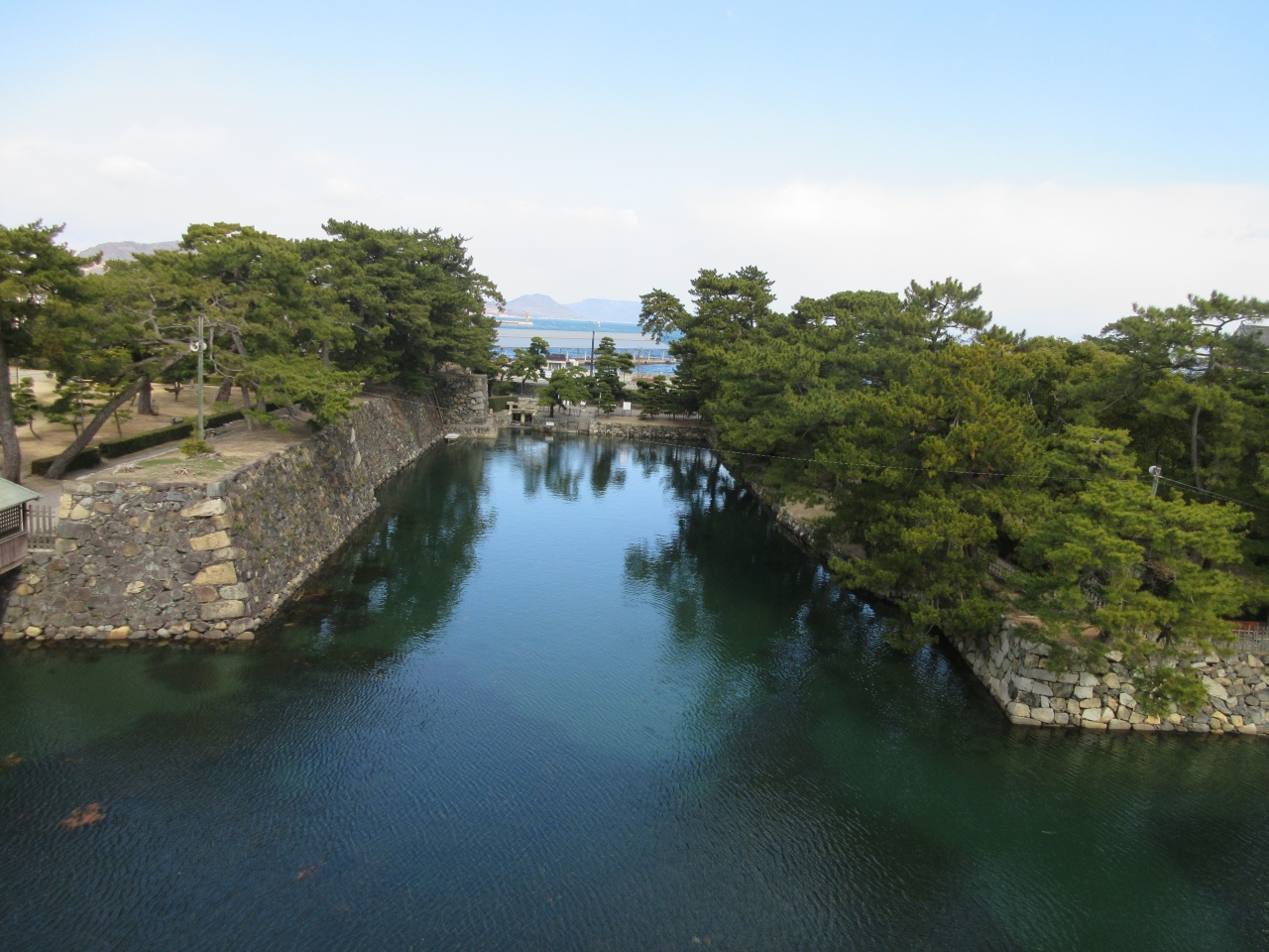 「鯛だ、鯛だ」と言っていると地元の方が、稚魚の時に海とつながっている所から入って来るが大きくなってしまうと通れなくなり堀にいる。と説明して下さいました。