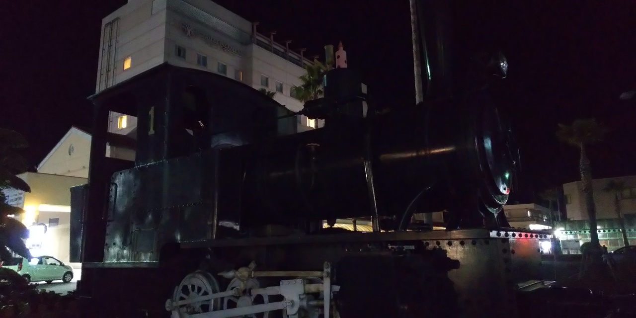 JR四国の宇和島駅は終着駅でこれから先は線路がありませんが小さな蒸気機関車が展示されています。鉄道の街でもあったようです。展示というより置いてあるみたいな雰囲気であまり目立ちません。ロータリーの端の方にありました。鉄道唱歌100年記念事業で置かれたそうです