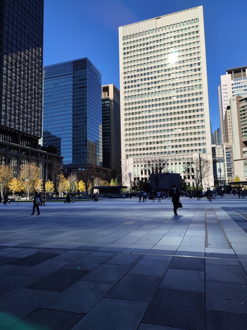 東京駅の西側の出入り口である丸の内中央口改札を出た正面にある広場です。そこそこ広く、多くのベンチもあるのでちょっと休憩にもいいですし、周辺のビルや赤煉瓦駅舎もよく見渡せます。ただ、ビルの間で風が結構強かったです。
