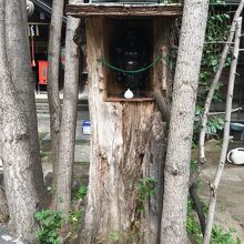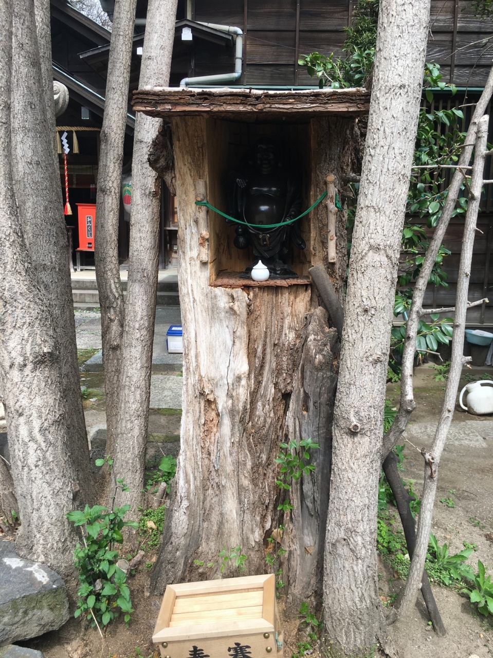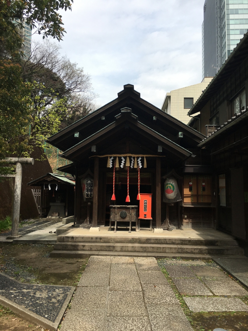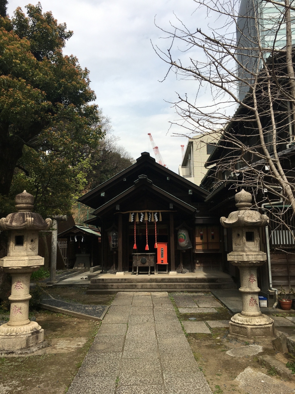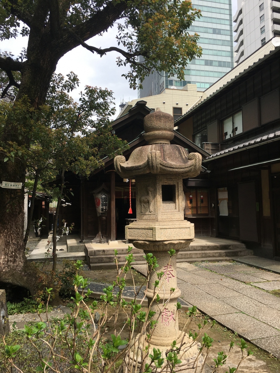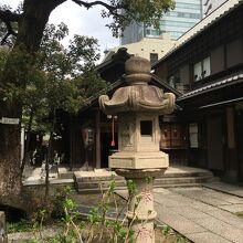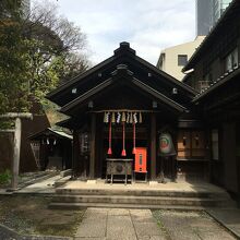 路地裏にあり少し奥まった場所にあるので知っている人しか行かないような神社かと思ったら参拝客が10人ぐらいいました。小さな広場もありベンチもあって可愛らしい社殿で自動販売機のおみくじもありました。境内へは階段を少し上がることとなります。