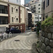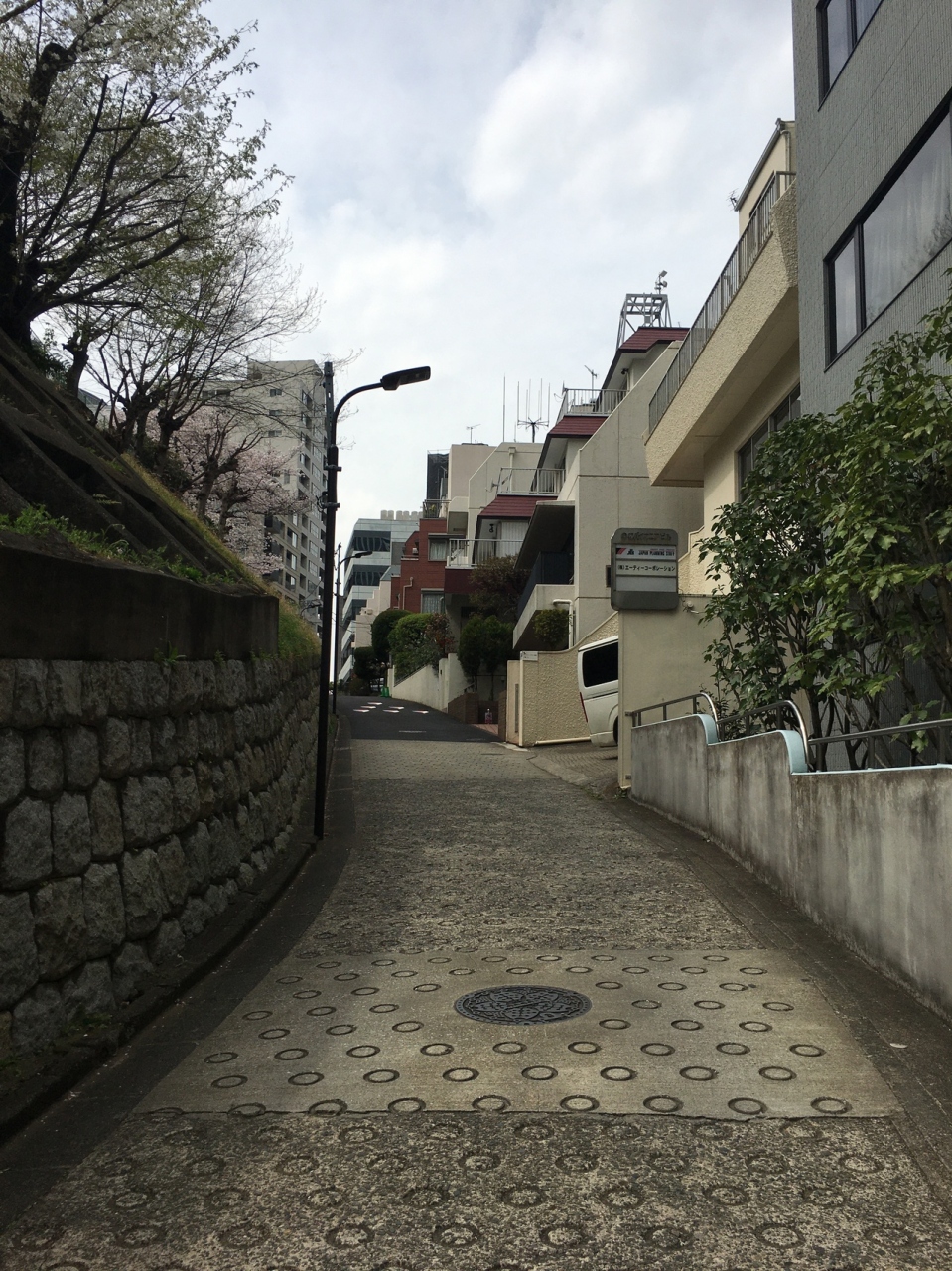 下から上がると右側には、硯のような黒い石碑に南部坂と書いてありました。緩やかになっているのではなく、いきなり急になっていて左にカーブしています。その後は一直線でしたがまだ急な坂道でした。自動車1台ほど通れる道幅です。