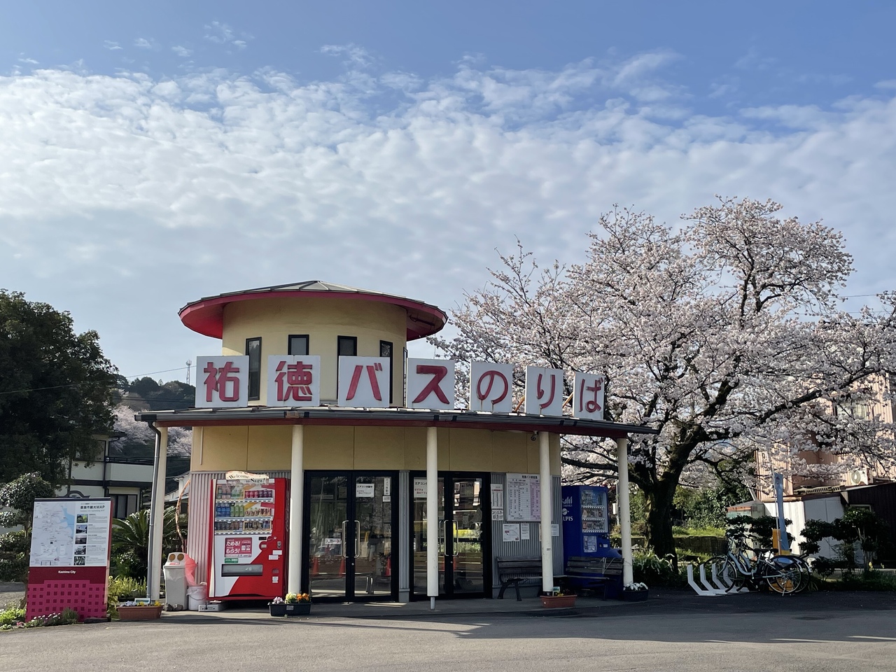祐徳稲荷から帰りに肥前鹿島駅まで乗車しました。祐徳稲荷ターミナルはさくらが満開でレトロな待合所があります。肥前鹿島駅前の本社バスターミナルもレトロなビルでした。小さなバスの運転手さんも気さくで丁寧、好印象です。