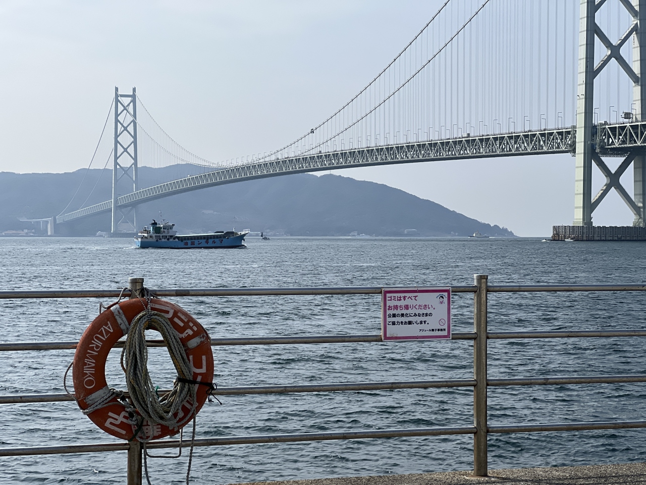JR舞子駅からよく見える明石海峡大橋。舞子駅到着前にこの橋が見えると非常に感慨深いものがあります。橋の上にも登れる施設もありますし、公共交通機関としてのアクセスも可能。また、JR朝霧駅からもよくみえます。