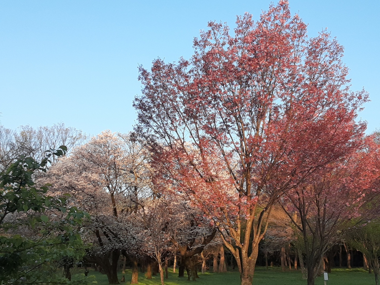 桜の名所ともあって園内には至る所で桜の木が。中でも染井吉野は正門口から入って左手、公園西側の広場にまとまり、さらに奥に進んだ桜の園では寒緋桜など多くの種類の木があります。
