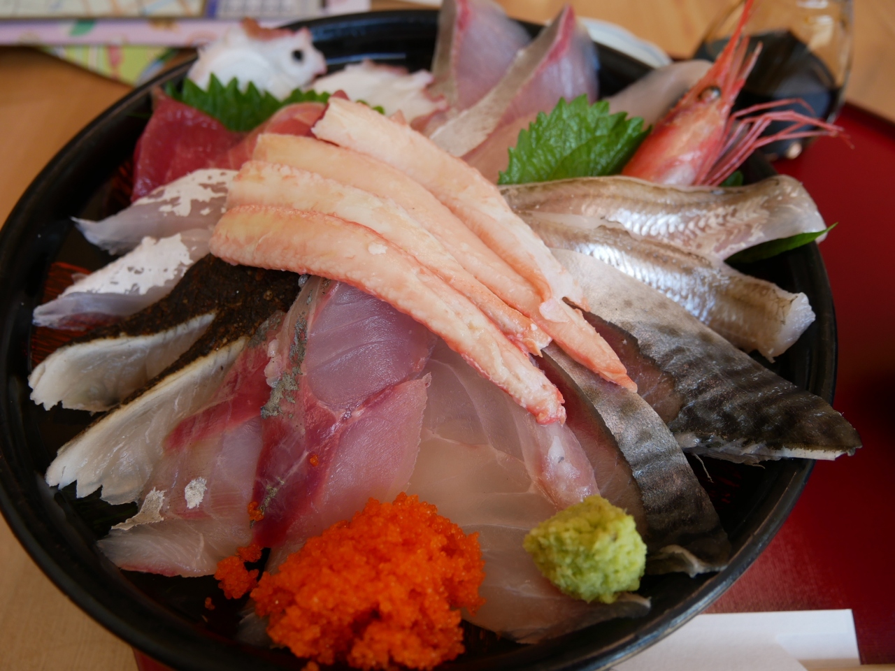 注文したのは基本(?)の海鮮丼にマグロとカニがプラスされているちょっと豪華丼(1800円)。