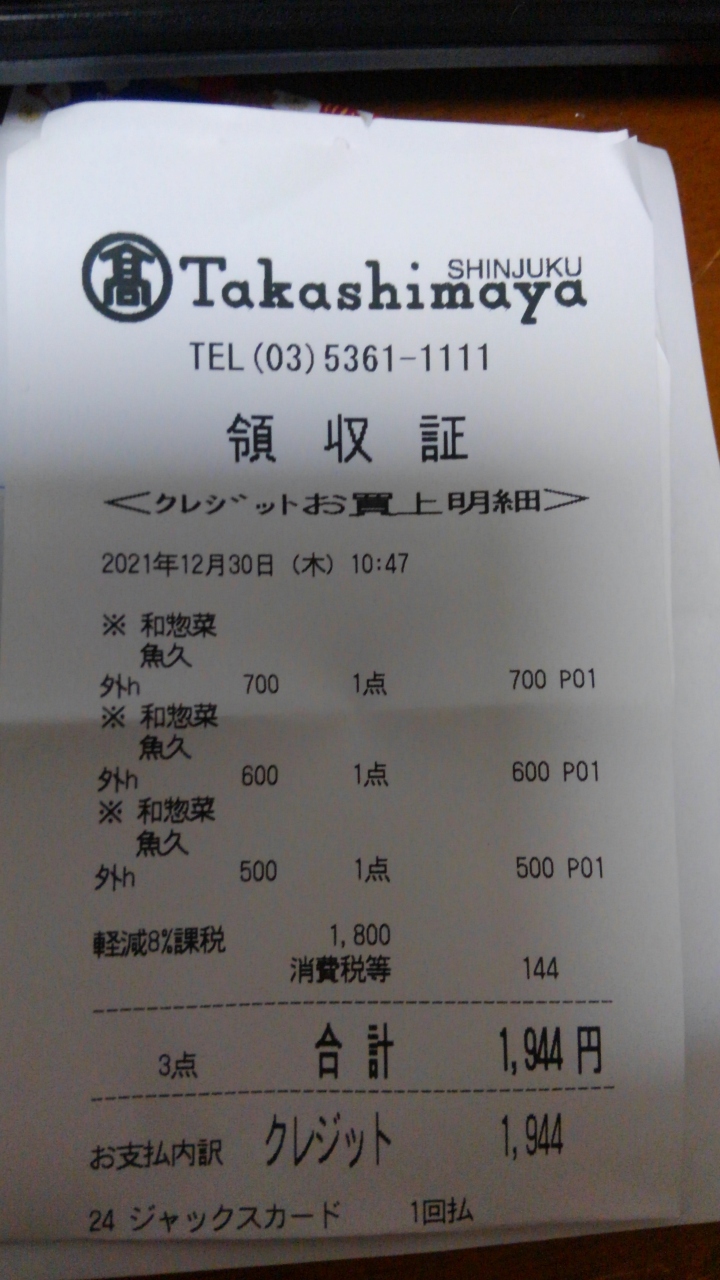 京粕漬 魚久が新宿高島屋の地下の食品フロアにあります。こちらの魚久には、お歳暮、お年賀、お中元など贈り物だけでなく、自宅用にも購入します。自宅用にはお得セットを購入するのがちょっとお得ですが、売り切れで無いときには普通の商品を購入します。接客がとても丁寧です。今回は自宅用を購入しました。