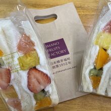 フルーツサンドは店先の冷蔵ケース内に入っていました。開店時間にすでにケース内に陳列されているので、その日の朝に並べられたというよりは前日のうちにあったものなのかなという印象です。