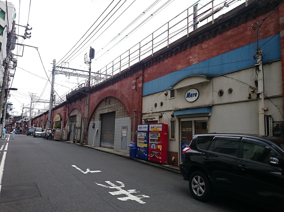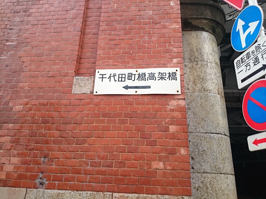 JR神田駅東口から東京駅方面へ徒歩3分程度、千代田橋架道橋と西今川橋架道橋の間のJR線路の高架部分が、千代田町橋高架橋です。最初の架橋は大正8年(1919年)で100年以上の歴史があります。この辺りは赤レンガの塀が残っていて、高架下には店舗が入居しています。