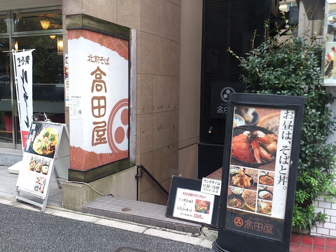 JR総武線千駄ヶ谷駅からすぐ、渋谷区千駄ヶ谷1丁目の線路沿いのビルの地下1階にあるお蕎麦屋さんです。ランチで天丼とごまそばのセットをいただきました。しし唐、キス、海老3尾の天ぷらがのっている天丼とざるそばのランチ定食です。天ぷらの質は高く、タレの味もGOOD。久しぶりにリッチなランチをいただきました。