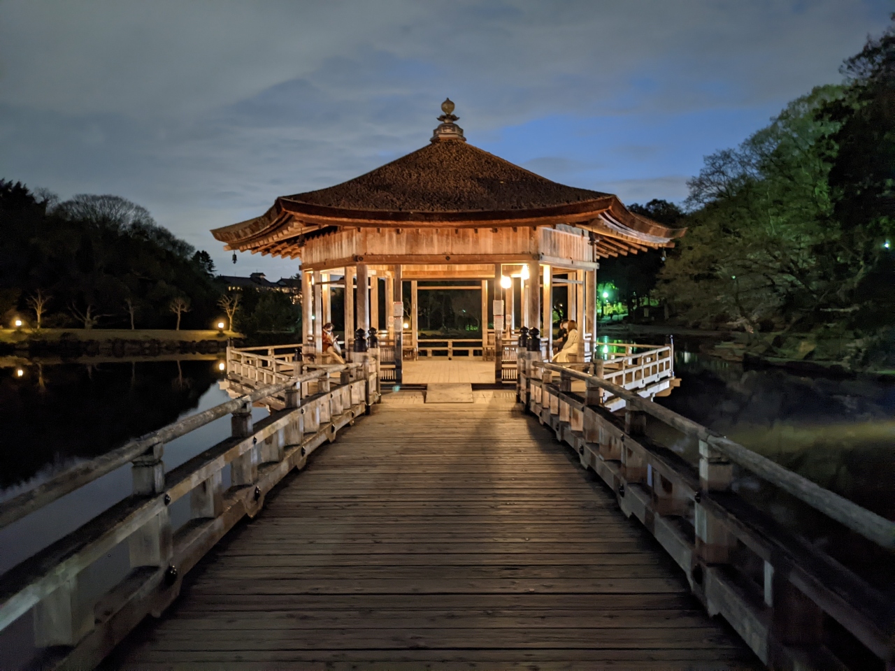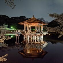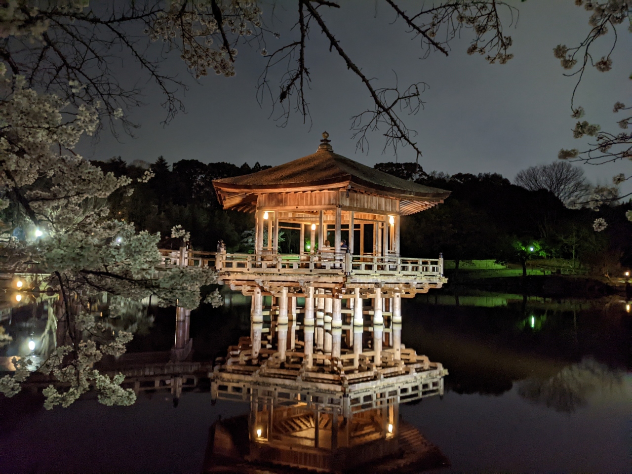 奈良公園の一角、鴬池に浮かぶ六角のお堂。夜間はライトアップされていて、なかなかの景観です。時は桜の季節で、とても風流で癒されました。京都ではこういうのは(無料では)なかなか開放されていない。奈良はこういうのがあるので侮れない。