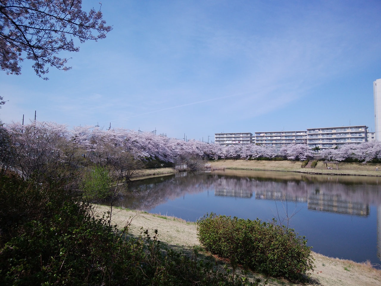 桜の時期になると、この池の回りと川沿いに桜が咲きます。