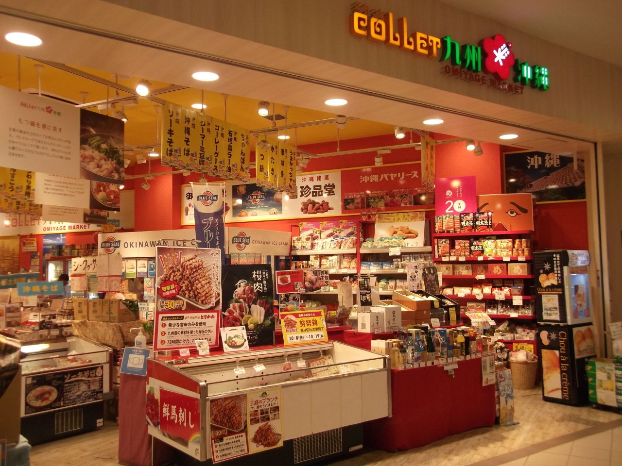 ららぽーとTOKYO-BAY西館1階にある、九州・沖縄の名産品が並ぶアンテナショップです。店内にはおなじみのもののほか、関東ではなかなかお目にかかれない珍しい商品もあり、それらを見つける楽しみがあります。特に沖縄の商品がお気に入りで、ソーキそばなどを購入しました。