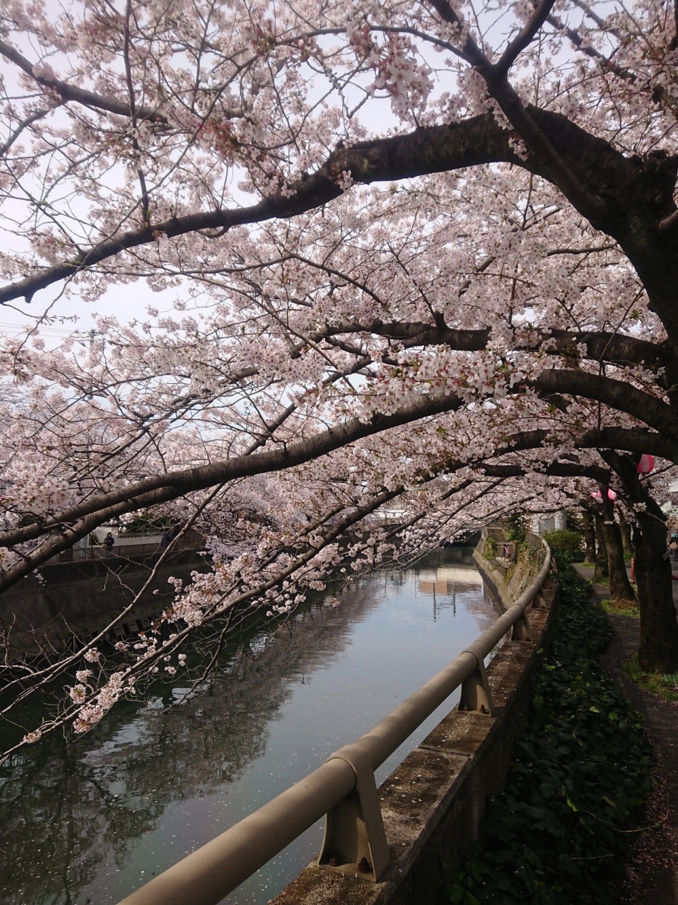 市川市の桜の名所の一つ真間川沿いを散策しました。見頃な桜が真間川に向かって下垂れる景色は見応えあります。川沿いを多くの人が歩く中で、春の訪れを感じるひととき。川面や道沿いに散る桜の花びらも趣があり、これまたよきかな。