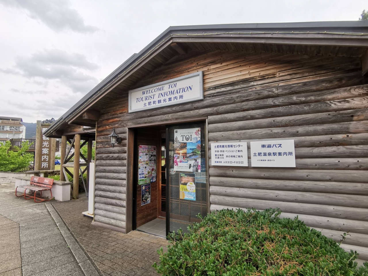 土肥温泉の無料駐車場からほど近く、花時計のすぐ横にある観光案内所です。