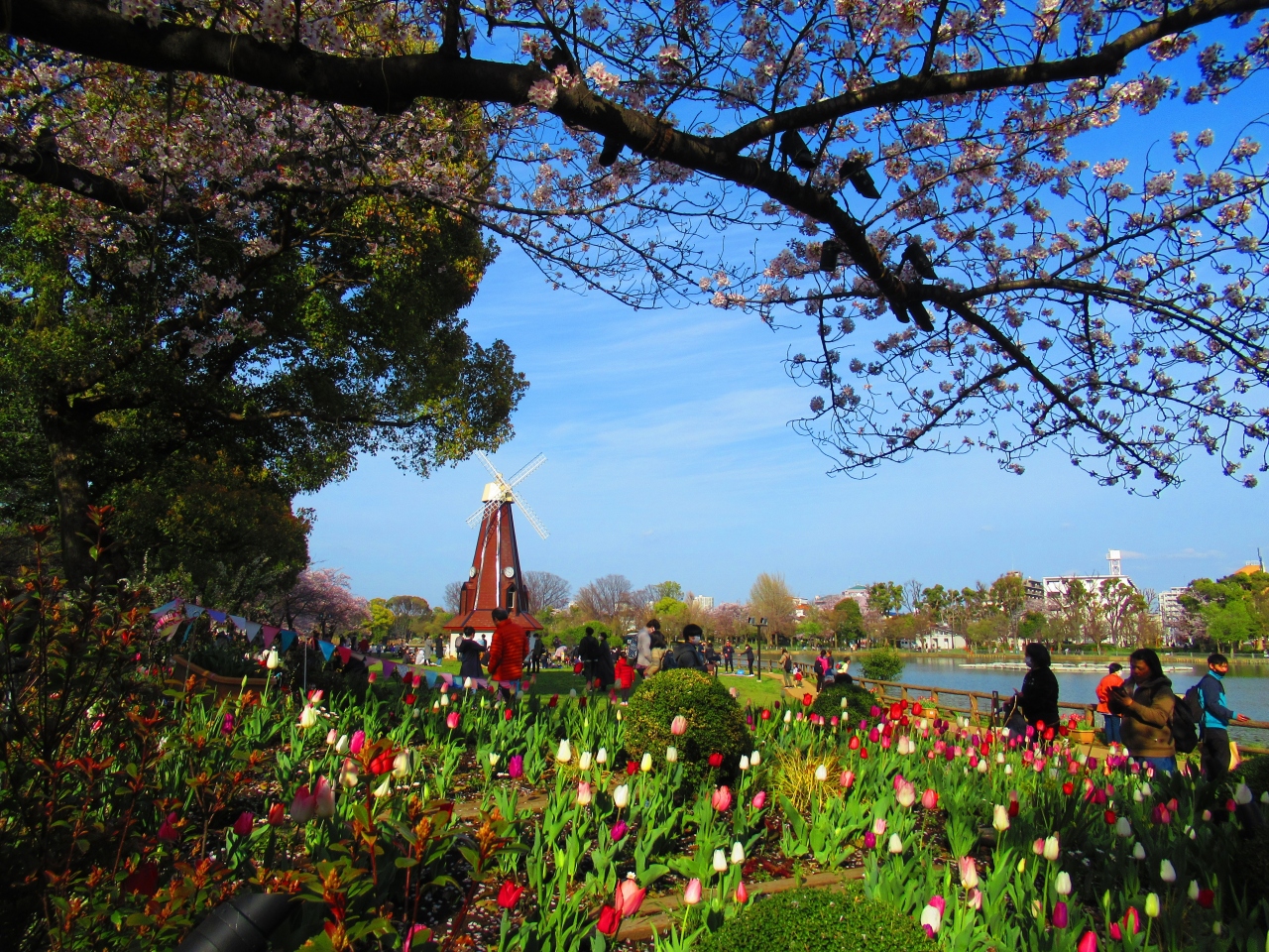 埼京線の都内最後の駅「浮間舟渡駅」の駅前にある公園です。大きな池を取り囲むように遊歩道が設けられていて、訪れた4月2日は桜が満開で、チューリップもキレイに咲いていて、散策したり、のんびりしたりするのが本当に気持ちのいい公園です。シンボルの風車もかわいくて、おススメの公園です。