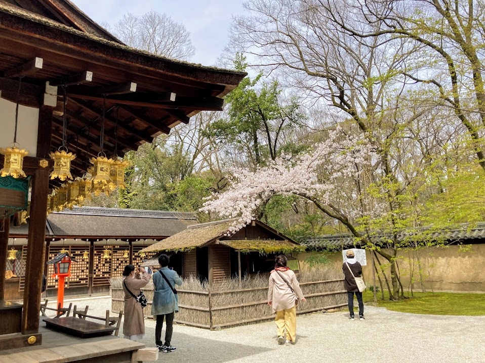 もう一つ目をひいたのが、鴨長明の方丈です。下鴨神社の神職、禰宜(ねぎ)の次男として生まれた鴨長明が58歳に構えた方丈の庵のレプリガがありました。すごく質素な構えでしたが、屋根の草と桜が綺麗でした。