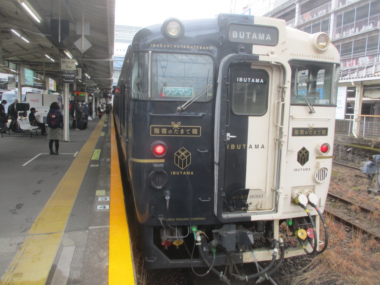 指宿のたまて箱とは鹿児島中央駅と指宿駅を結ぶ観光列車のことです。白と黒の外装がとても特徴的でした。あらっ、思わずあしゅら男爵みたいと思いました。JR九州管内に来ると、東日本エリアを走行している車体とは少し異なる列車を見かけるので楽しいです。