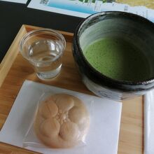 で、代わりに「お抹茶セット」(税込700円)をいただくことに。ごくありふれた最中と抹茶のセットでした。
