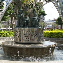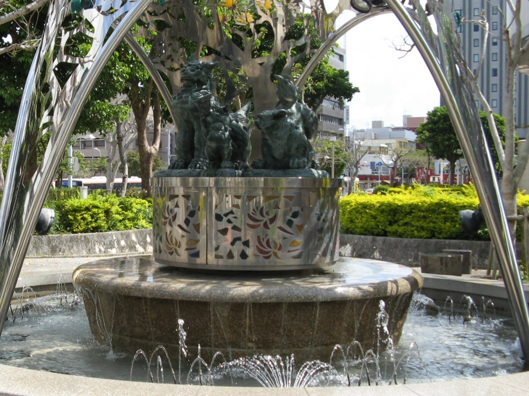 沖縄県庁と那覇市役所の間にある公園です。公園の中には親子のシーサーを配した噴水モニュメントがあります。公園の一角ある説明板に『沖縄県をこよなく愛する人々の誠意と浄財を集めて建立された』とあり、そこから公園名が名付けられたようです。噴水の周りにはベンチもあるので街歩きの休憩に使えそうです。