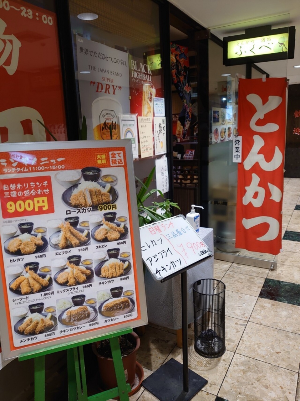 この日は揚げ物(フライ)の定食をリーズナブルに食べられるふくべというお店に行きました。