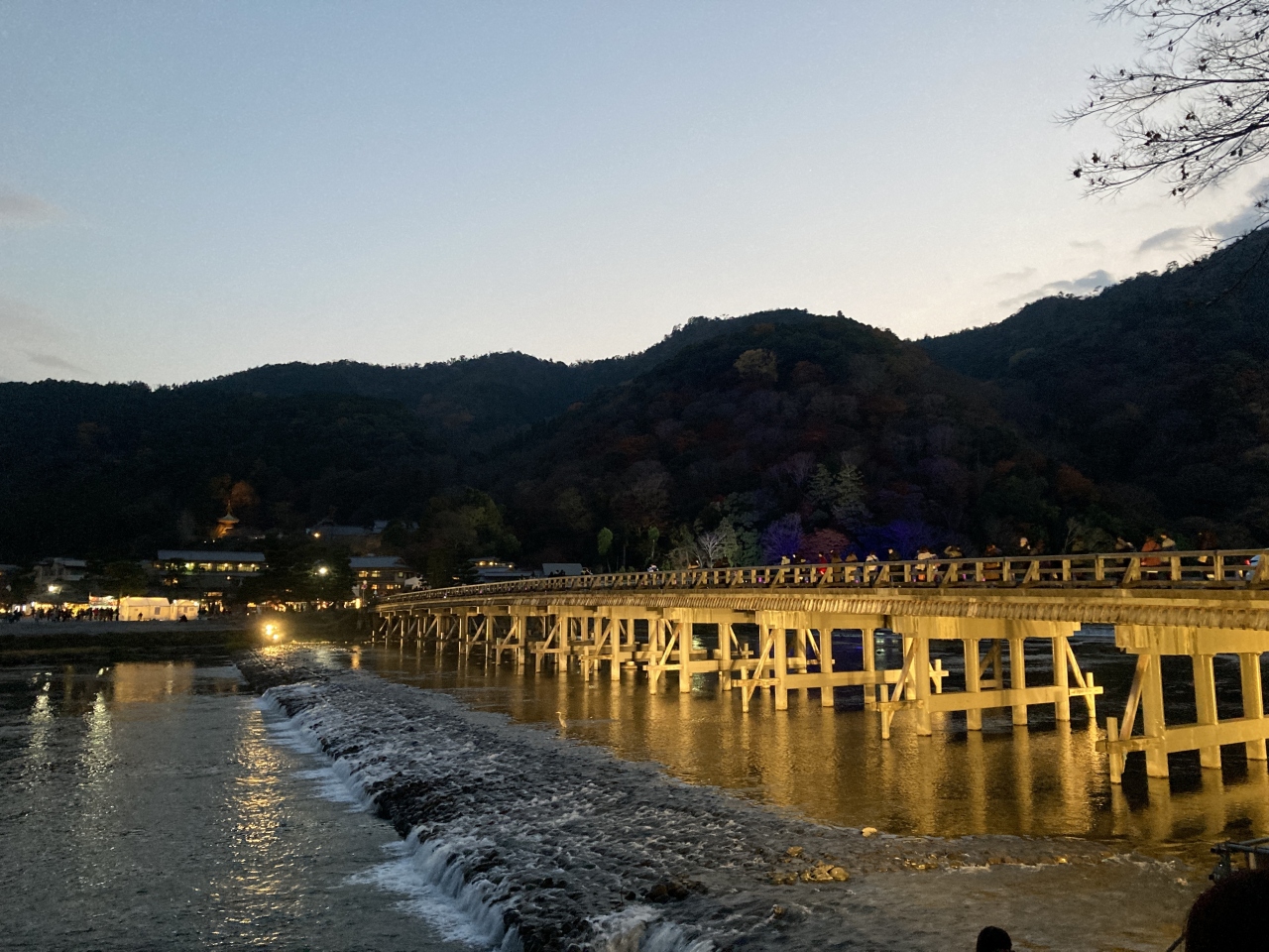 ライトアップされた渡月橋は幻想的で、一面に広がる山並みと川のコラボレーションは格別。昼間の景色ももちろん素晴らしいですがまた新しい京都の魅力を見つけることができました。
