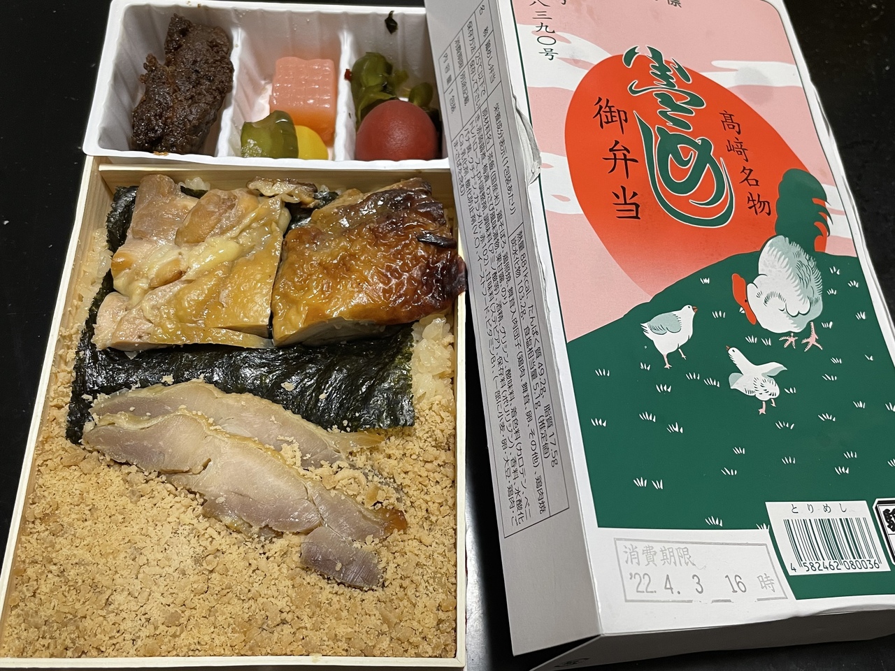 高崎駅の駅弁売店のメイン店です。在来線改札口のすぐ横にあります。横川駅の峠の釜めしにだいぶスペースを取られていましたが、高崎の定番のひとつ、鶏めしもたくさん積まれていました。パラパラで軽くそぼろも人気のひとつです。