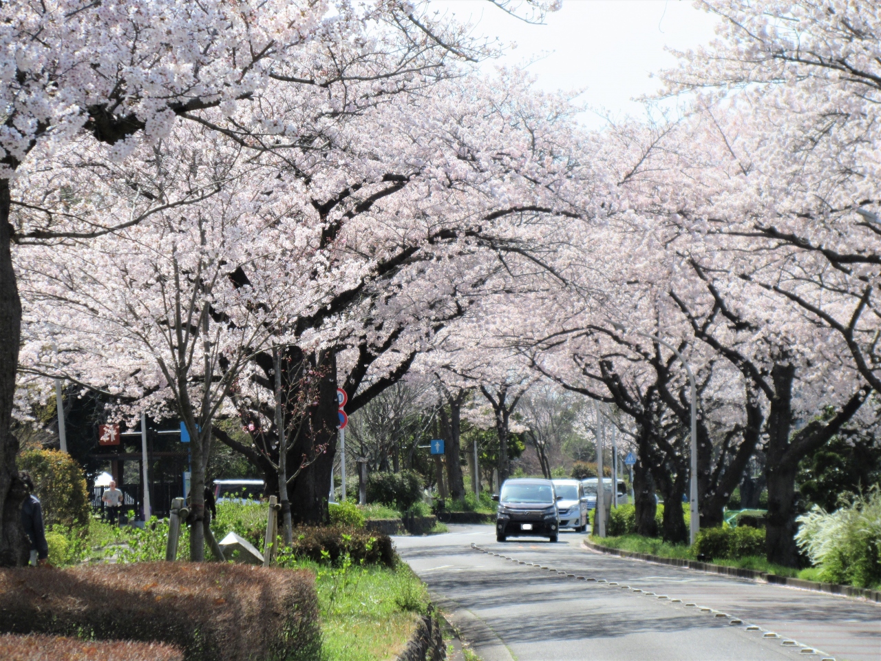 満開の桜並木は『桜のトンネル』になって、見事です