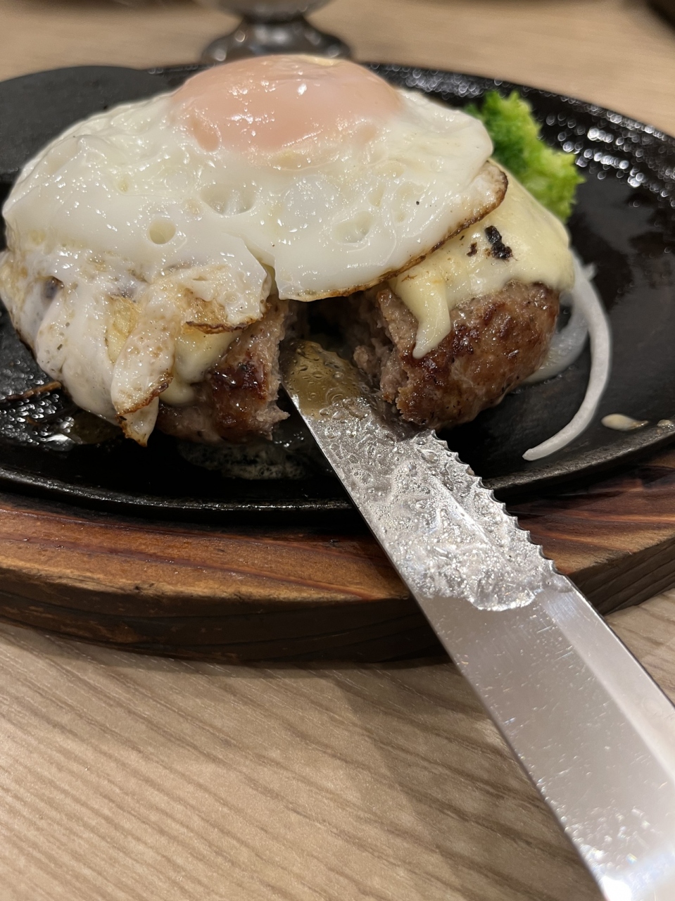 いつも通り「あさくまハンバーグ」に チーズと卵を トッピングして注文。