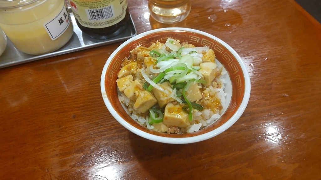ビールを飲みながら、雲吞を食べ、麻婆飯を食べる。