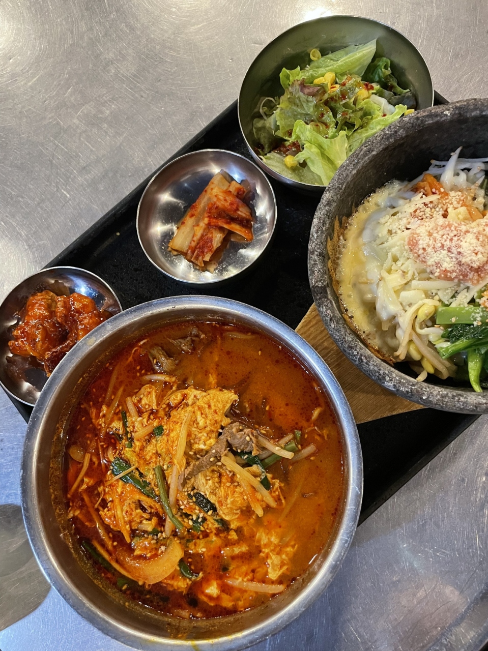 八重洲口から10分以内のレストラン街にあります。左右が居酒屋で日本橋に居るとは思えない雰囲気の一角。店内は韓国の市場にいるかのようです。ランチは幾つかありますが、チャーシュー丼がお休み。クリオネ会員だとフリードリンクが無料で韓国海苔が貰えます。1500円ぐらいと毎日には厳しいランチですが とても気に入りました。接客も良かったです。