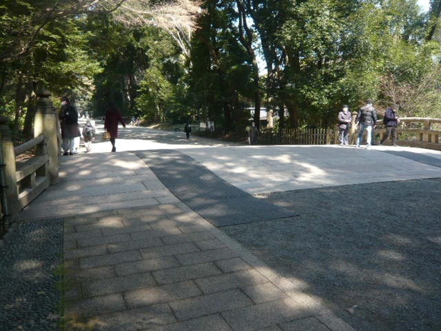砂利道の参道が続く中、南橋を渡ると、右側に、明治神宮ミュージアムに入る通路があります。