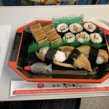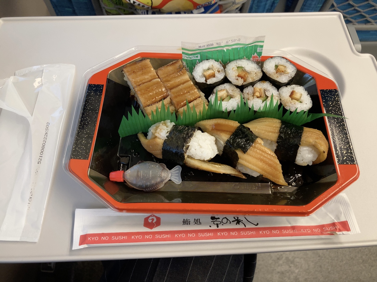 出張帰りに穴子寿しの駅弁を買いました。新幹線改札口の内側にある駅弁の中で美味しそうな穴子つくしという駅弁がビールのお供に合いそうだったので。巻き寿司、押し寿司、握り寿司が上品にセットになっておススメです。巻き寿司が特に気に入りました。