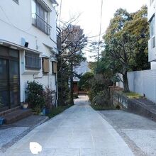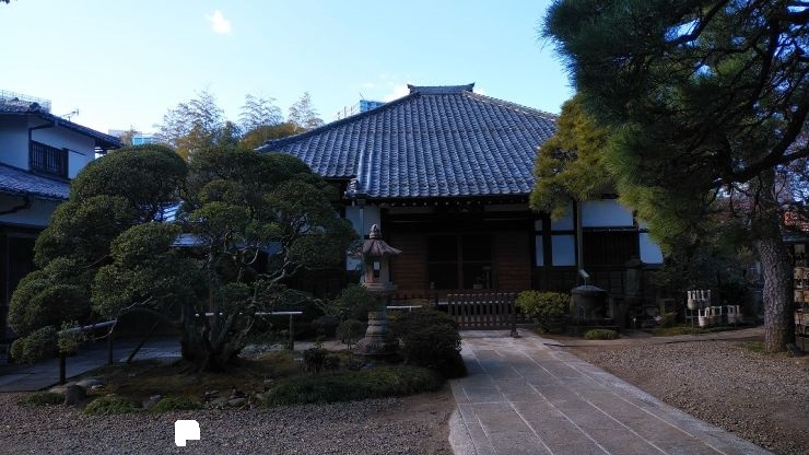 聖坂沿いにあり向かいは公園。参道は奥行きがあり、本堂は山門から下り坂になっているのが特徴的だった。