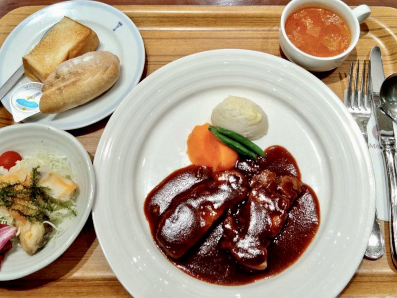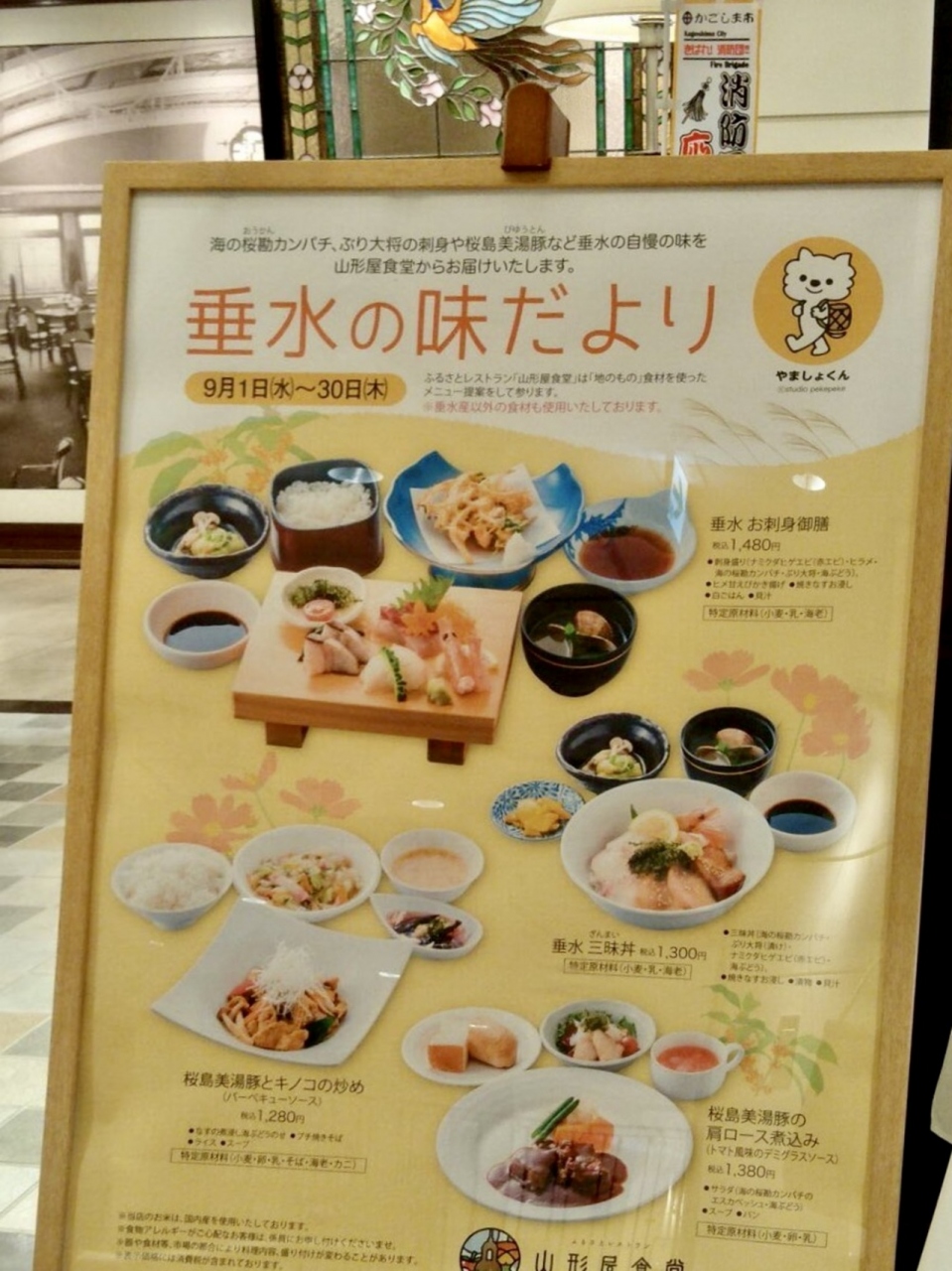 山形屋1号館7階にあるレストラン「山形屋食堂」でお昼ご飯にしました。食べたのは、桜島美湯豚の肩ロース煮込みが美味しそうだったのでそれにしましたが、山形屋食堂の名物と言えば、焼きそば。たっぷり野菜と、赤と白の刻んだ蒲鉾、豚肉の餡は懐かしい味。三杯酢をかけると味が締まって美味しいですよ