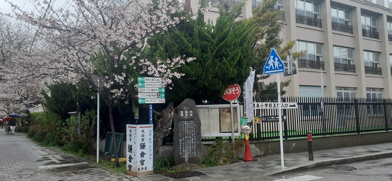 鶴ケ岡八幡宮から源頼朝の墓に向かう途中、小学校の敷地の片隅にあります。