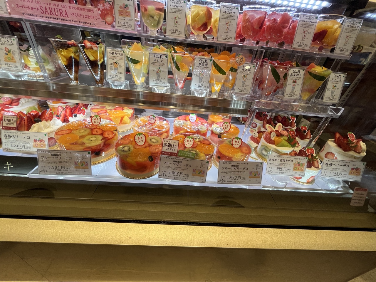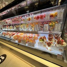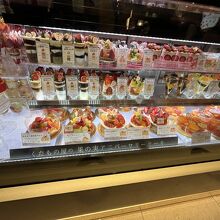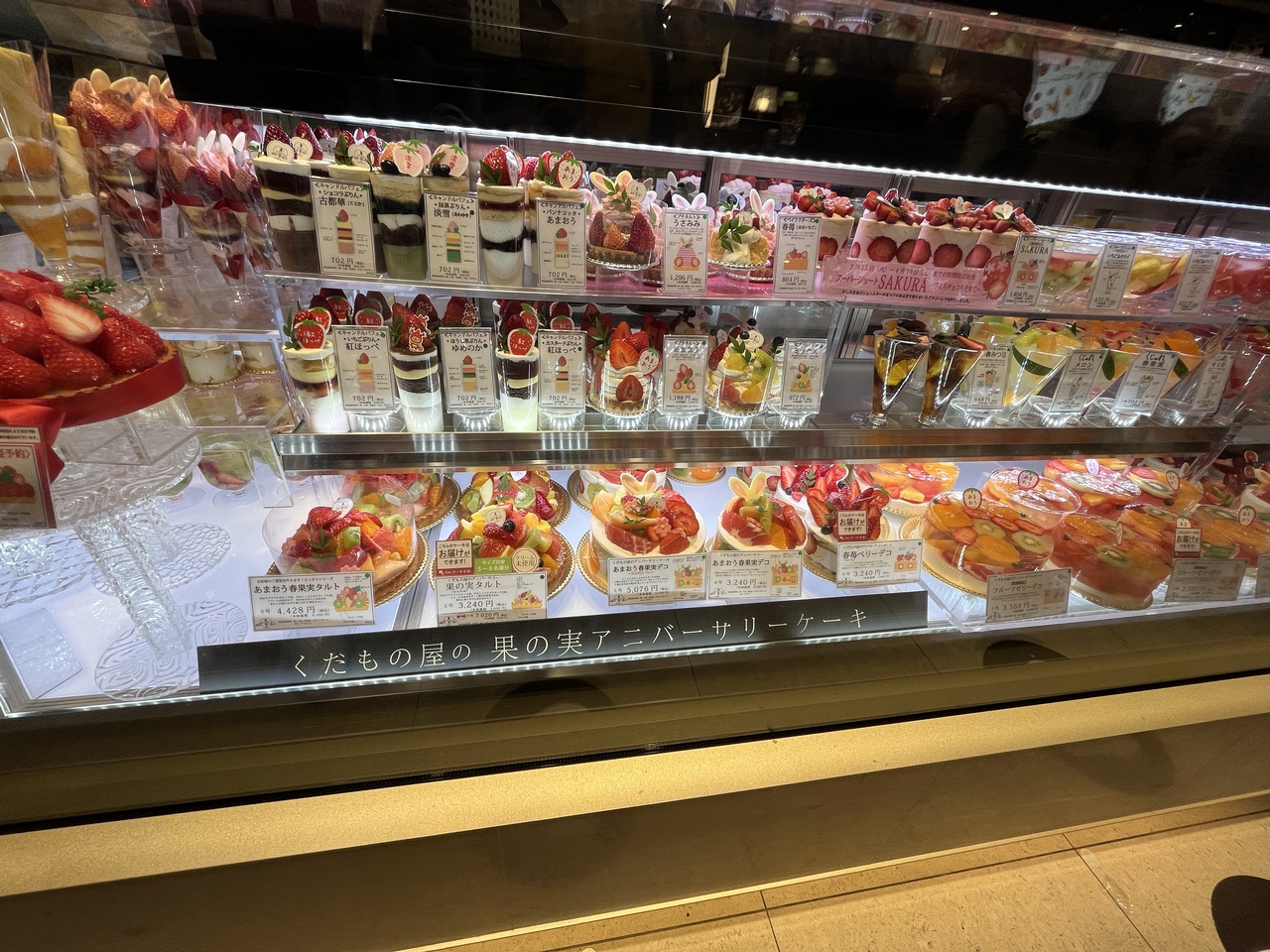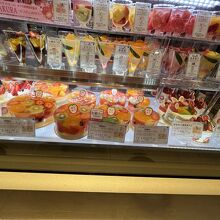 キラキラした ケーキ や ジュレ が並び、くだもの好き には たまりません